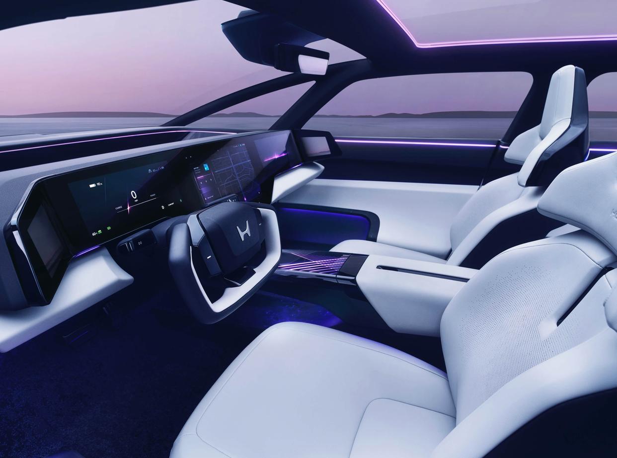 本田0 Saloon概念车将会基于本田纯电专属架构打造,采用了动力参数更加亮眼的电动机,并配备了一种新型的薄款锂离子电池,目标是EPA额定续航里程约480公里。Honda 0 系列车型搭载的自动驾驶系统,首先将实现高速公路拥堵时脱眼技术的应用,此后通过 OTA 升级,不断扩大驾驶辅助和 L3 级自动驾驶的应用场景和范围。在 L3 级自动驾驶阶段,驾驶主体将从人转移到车辆,驾驶者可以在移动中实现如看电影、远程会议等“第二任务”,这在以前是无法实现的。通过各种超前的技术,Honda 将率先在全球首次实现全域脱眼,为移动出行开辟新的可能性。